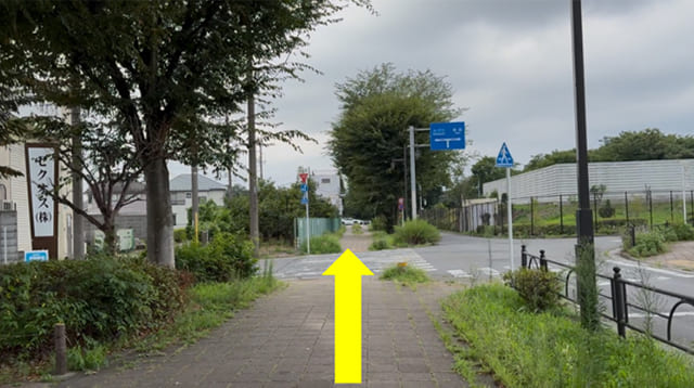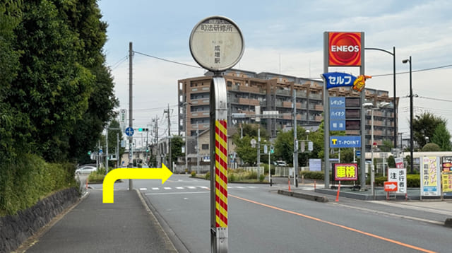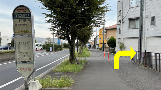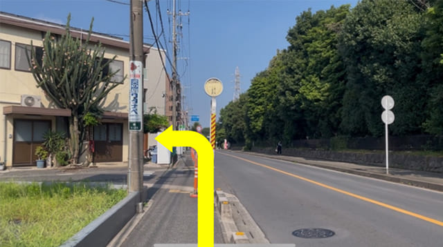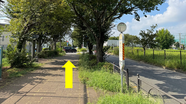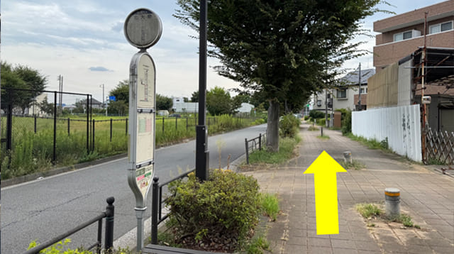 バスを降りたら、左(バスの進行方向とは逆)に進みます。