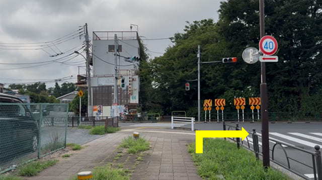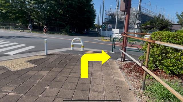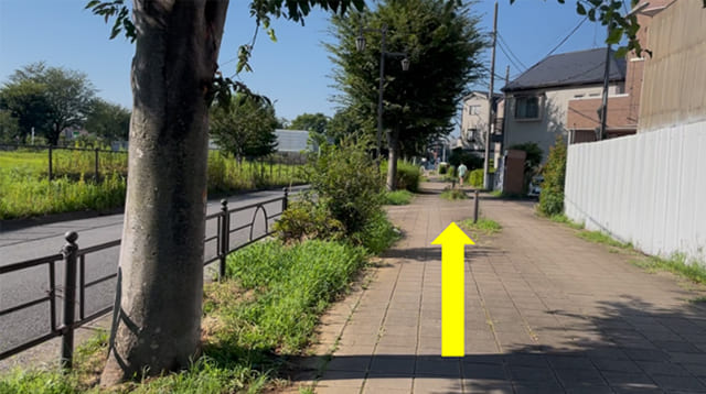 歩道に沿って、右に曲がりまっすぐに進んでいきます。