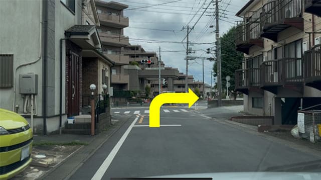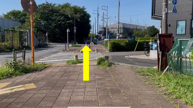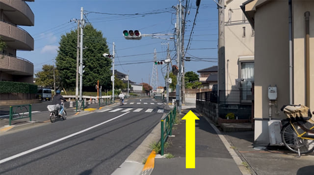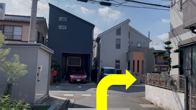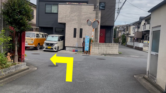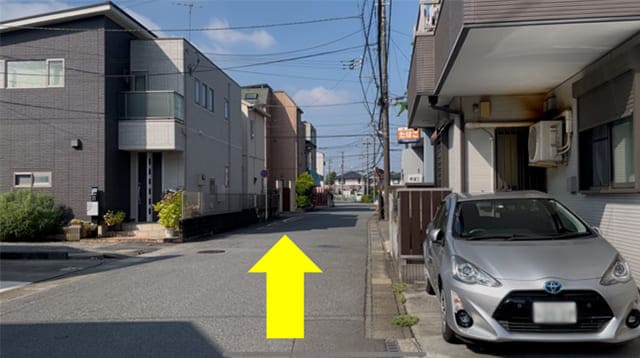 すぐにある曲がり角を左に曲がり、まっすぐ進みます。