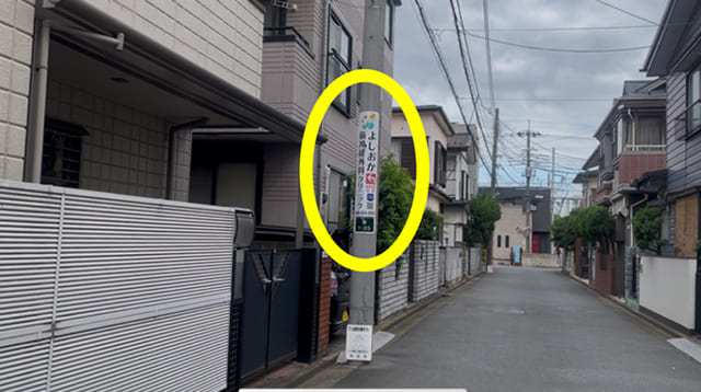 左手に当クリニックの電柱広告が見えますのでそのまま進んでください。